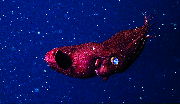 - A bizarre feeding strategy, using its eyes to track glowing jellyfish prey.
