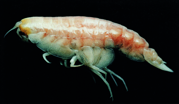 - A tiny, wingless insect-like arthropod that feeds on microbial life in the cave.